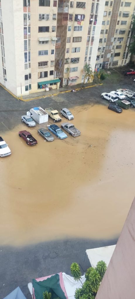 En la urbanización El Trigo colapsó una torrentera en la calle principal, cerca de residencias Lagunetica. Una parte del estacionamiento quedó inundado. En un video que envió una vecina se observa como pasaba un autobús desafiando la corriente.