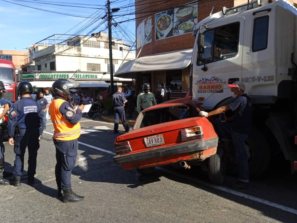 Un camión JAC tipo volteo, placas A82C02K, perteneciente a Barrio Nuevo Tricolor y conducido por Héctor Colombani, perdió los frenos y colisionó a las 8:30 am, contra cuatro vehículos que se encontraban frente a la panadería la Almendrina, en la avenida La Atlántida de Catia la Mar.
