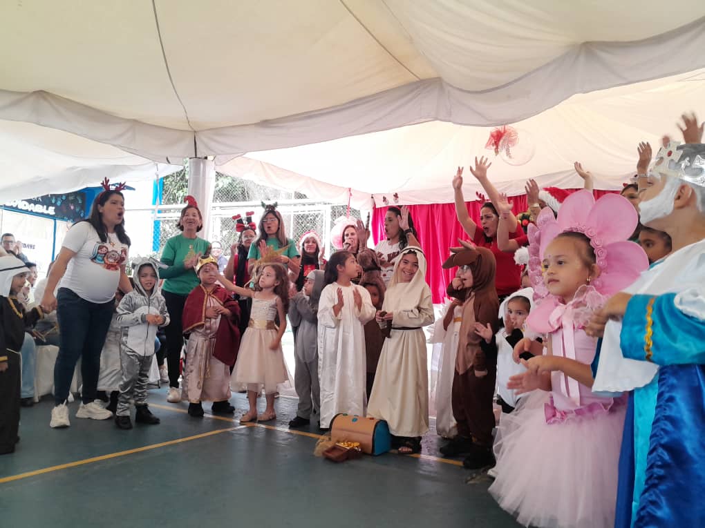 Maestros, estudiantes y representantes se congregaron en el centro estudiantil para disfrutar de diversas actividades que resaltaron el valor de las tradiciones navideñas. El acto central fue la representación del pesebre viviente, protagonizado por los niños y niñas de los niveles de preescolar A, B y C. Ataviados con trajes alegóricos a la Navidad, los pequeños encarnaron a los personajes del nacimiento del Niño Jesús: pastores, ángeles, los Reyes Magos, San José, la Virgen María y el Niño Jesús, en una escenografía cuidadosamente preparada por los docentes bajo la orientación de la directora de la institución, profesora Ana Varela.