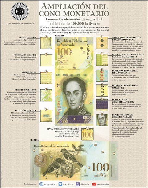 Estos son los elementos de seguridad del billete de 100.000 bolívares http://bit.ly/2z5LbTG