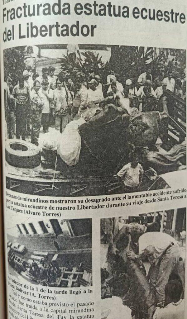 Pero previo a este momento histórico, seis días antes para ser más exactos, es decir el 13 de abril, la imagen sufrió una fractura en el brazo derecho cuando la trasladaban desde Santa Teresa (Valles del Tuy), donde la elaboraron, hasta la capital mirandina.