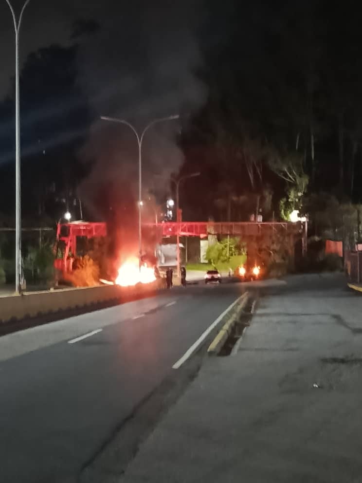 La concentración se unió en la redoma de Los Teques, desde donde marcharon por la carretera Panamericana hasta la redoma de Corralito, en Carrizal, donde quemaron cauchos.