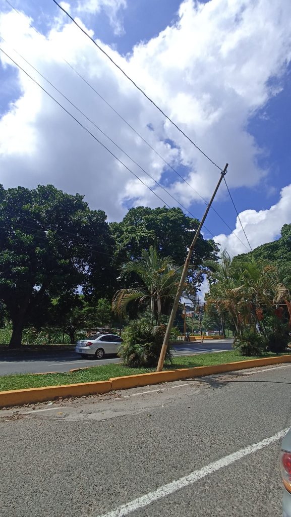 Jordan Azuaje, conductor, dijo que el referido mástil, cuya nomenclatura es 36HH355, “lleva muchísimo tiempo en esas condiciones, aunque no es de alumbrado público y solo sirve para hacer de soporte a unos cables genera angustia el muy notable nivel de inclinación que presenta”. Ante este tipo de incidencias, desde la Corporación Eléctrica Nacional instan a los usuarios a realizar el reporte a través de WhatsApp por los números 0426-515.99.79 o 0424-263.42.99. También recordaron la opción de la VenApp.