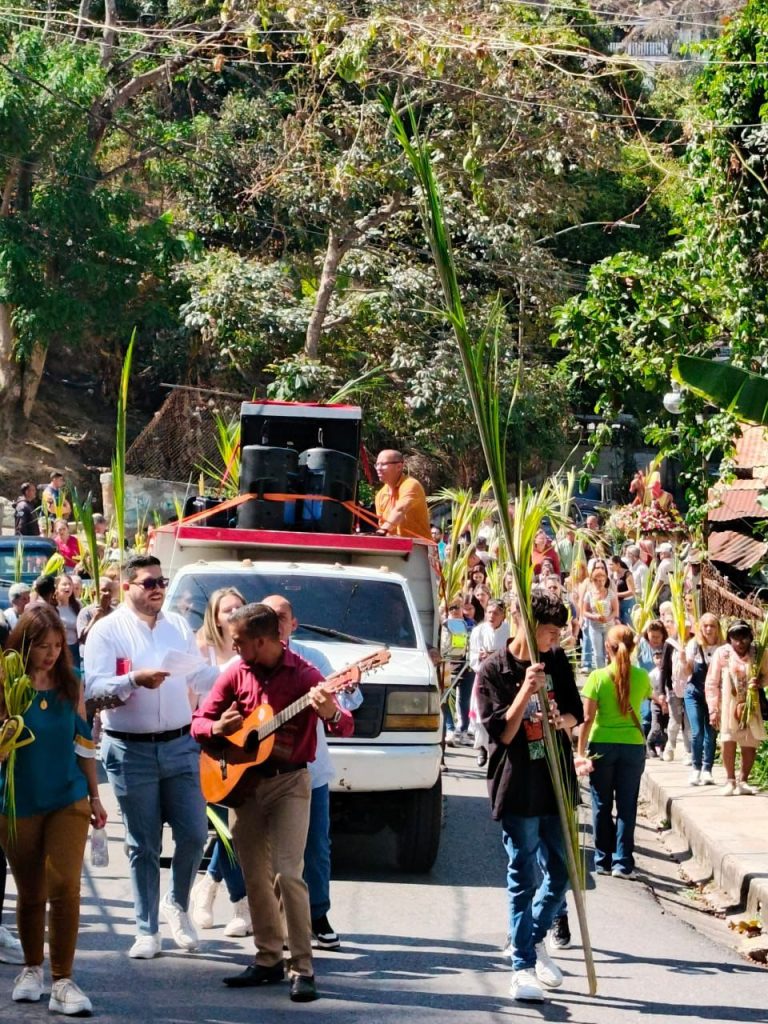 Tras la bendición en la plaza Bolívar, los fieles suben en procesión junto a la imagen de los palmeros para dar inicio a la Misa de Ramos, consolidando una de las manifestaciones religiosas más importantes de la parroquia y de los Altos Mirandinos.