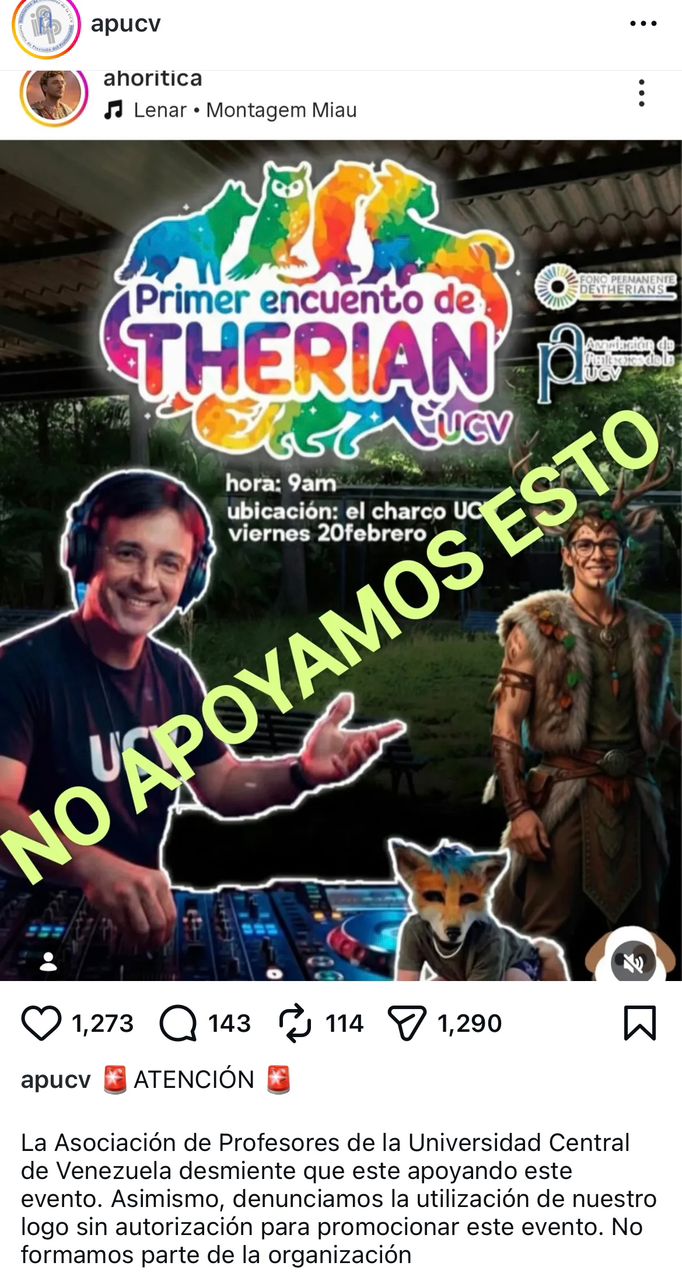 La Asociación de Profesores de la Universidad Central de Venezuela (Apucv) emitió un comunicado para deslindarse del denominado Primer Encuentro Therian UCV.