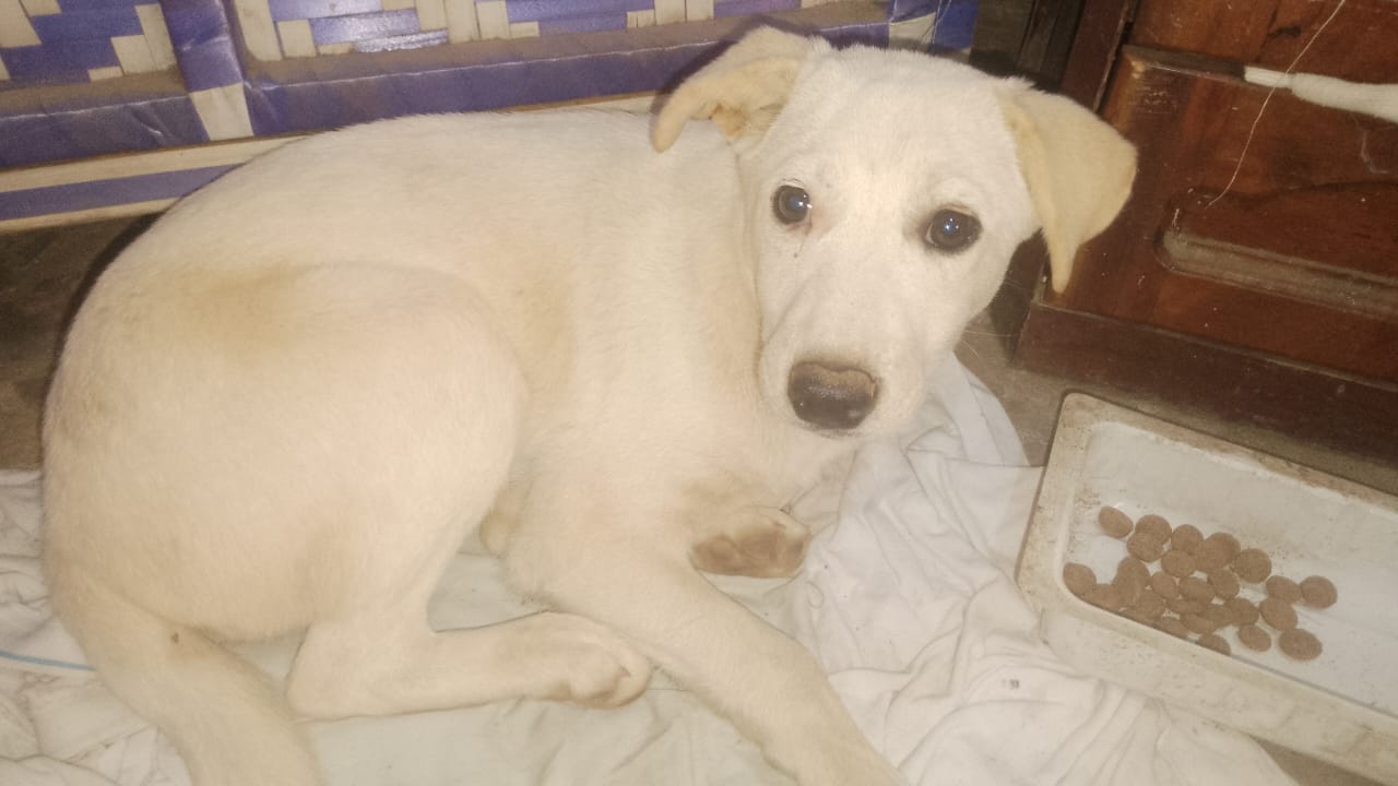 Aunque una de las cachorras fue adoptada por la agrupación Cóndor, otra, de pelaje blanco, permanece resguardada por la Manada Abijar hasta que logre encontrar un hogar amoroso y responsable.