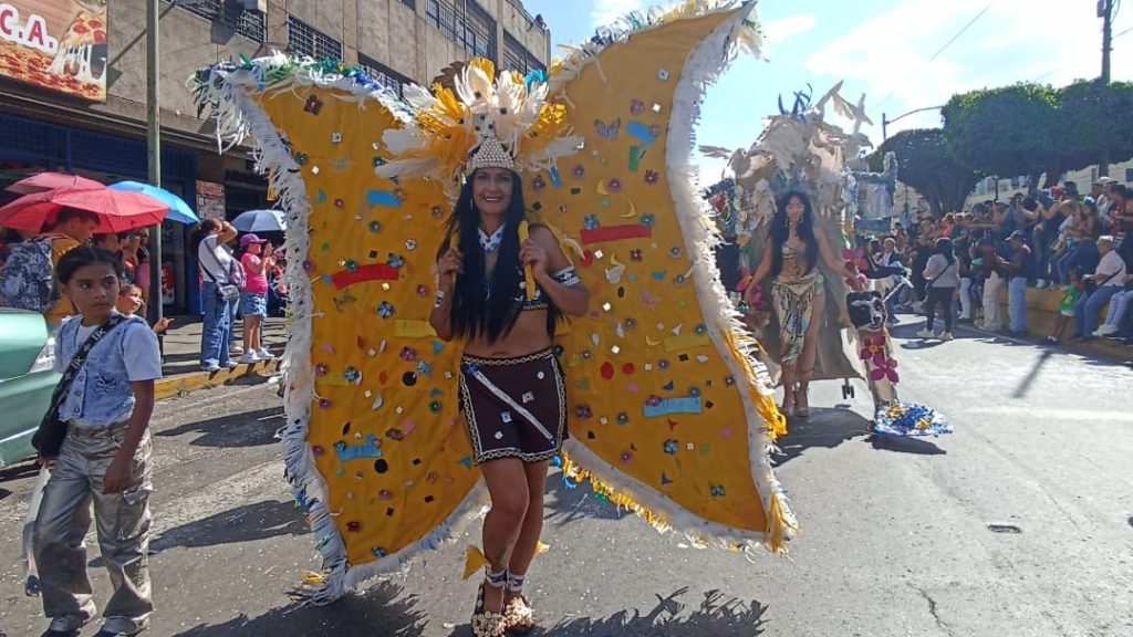 Las fantasías “Mágicos plumajes de Venezuela” y “El corazón de Guaicaipuro”, que estuvieron presentes durante el desfile escolar, realizado este viernes, continuaron al ritmo caribeño de los Carnavales Ecoturísticos Guaicaipuro 2026.